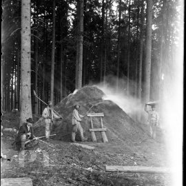 Pálení dřevěného uhlí v milíři