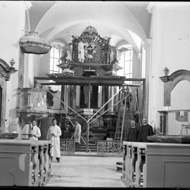 Stav: pár teček a škrábanců Poznámka: Opis ze staré obálky: Farní kostel - interiér 3 ks