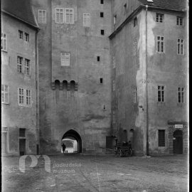 Stav: oloupané okraje, tečky Poznámka: Opis ze staré obálky: Zámek - nádvoří 2 ks