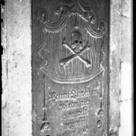 Stav: poměrně dobrý negativ Poznámka: Opis ze staré obálky: Náhrobní deska Krypty ve far. Kostele