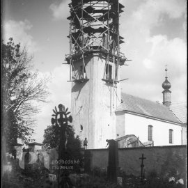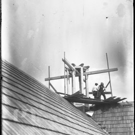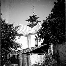 Stav: docela dobrý negativ Poznámka: agfa nakraji Opis ze staré obálky: Far. Kostel Oprava sanktusníku