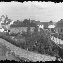 Stav: drobné škrábance Poznámka: za určení místa děkujeme Janě Filinové Opis ze staré obálky: V. Matoušek, Celkové pohledy Rožm., růz. osoby, též v lese, 12 negativů, krabička zn. Foma ortho rapid