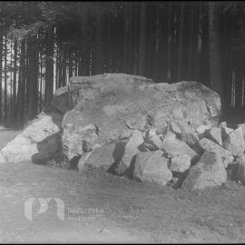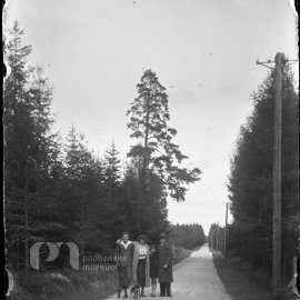 Stav: téměř černý negativ, špatně exponovaný Poznámka: Opis ze staré obálky: V. Matoušek, Celkové pohledy Rožm., růz. osoby, též v lese, 12 negativů, krabička zn. Foma ortho rapid