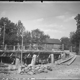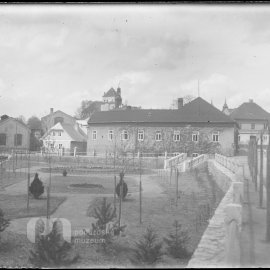 Stav: rozostřený snímek, tečky Poznámka: Opis ze staré obálky: Václav Matoušek: Různé záběry ze Starého Rožmitálu; Starý Rožmitál; St. R. Stavba mostu aj.; Též kostel po ohni. Krabička Foma ortho…
