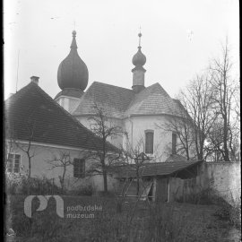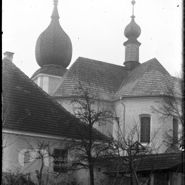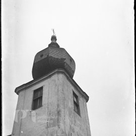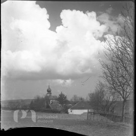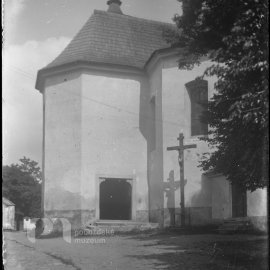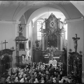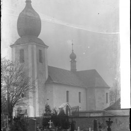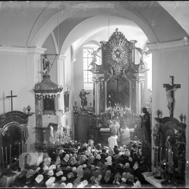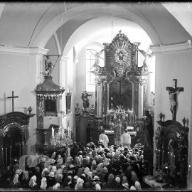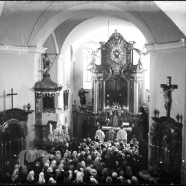 Stav: poměrně světlý negativ, tečky a škrábance Poznámka: Opis ze staré obálky: Václav Matoušek: Kostel ve St. Rožmitále, též interiéry s lidmi, krabička Mariors Gaslight Paper