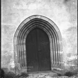 Stav: poškrábaný negativ Poznámka: Opis ze staré obálky: Václav Matoušek: Rožmitál, St. Rožmitál, též snímky odjinud. Portál je odjinud. (průměrné). Krabička Agfa Ultra rapid, photo-patten, 6,5x9