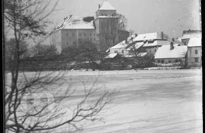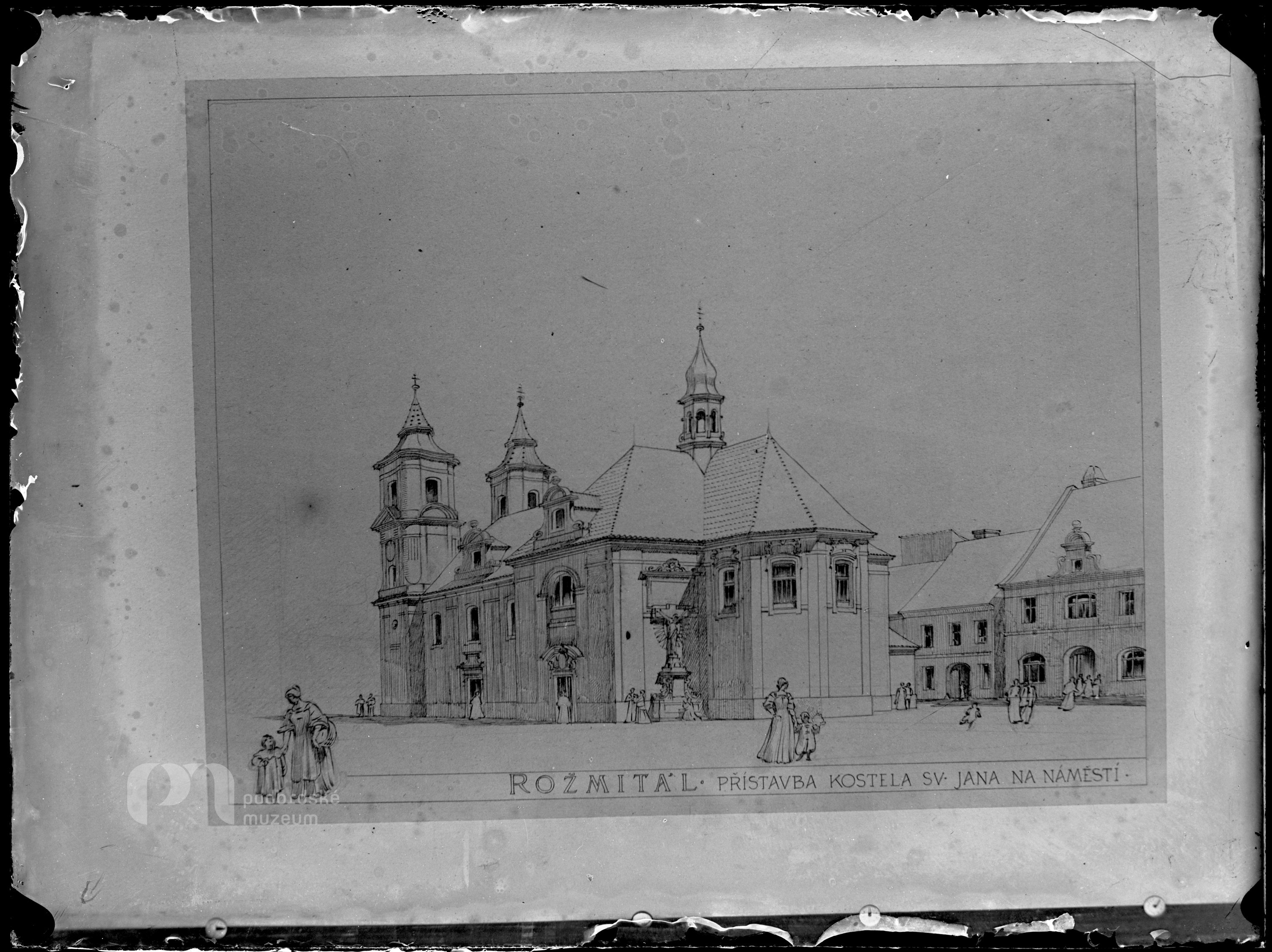 Poznámka: nápis: Rožmitál přístavba kostela sv. Jana na náměstí; vyfotografované i připínáčky držící návrh