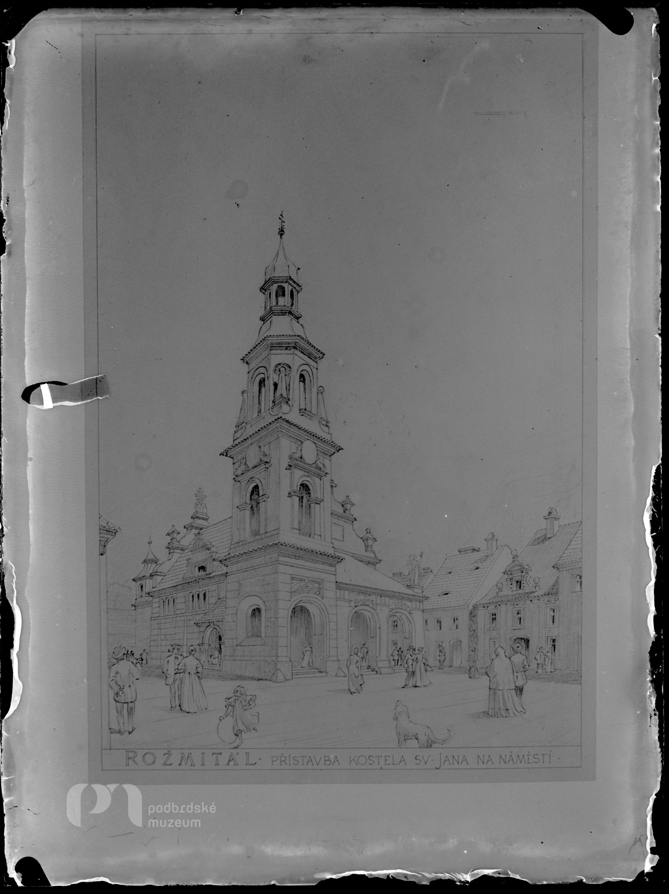 Poznámka: nápis: Rožmitál přístavba kostela sv. Jana na náměstí