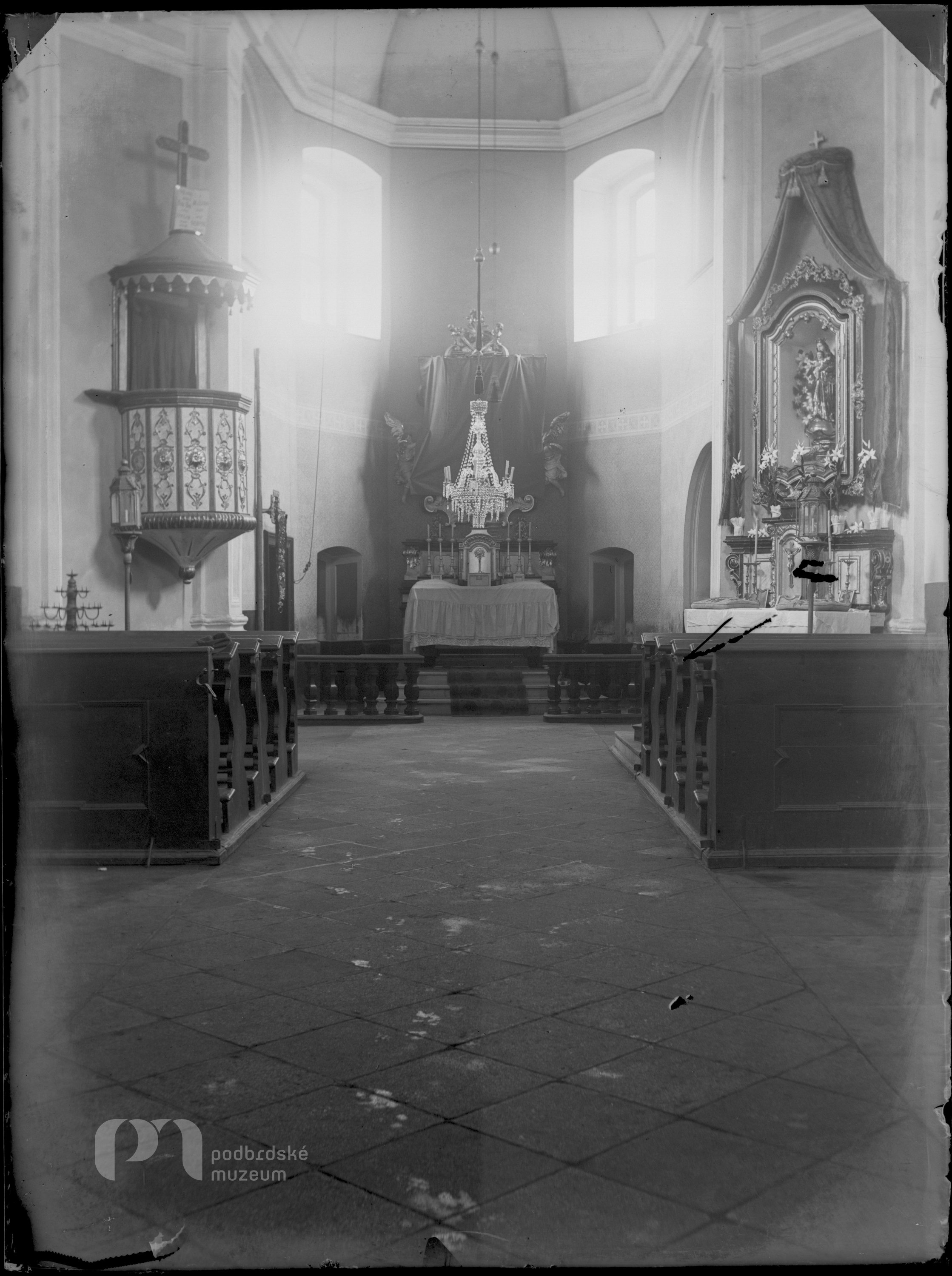 Opis ze staré obálky: Měst. kostel interiér; 18.7.1896; postranní oltář