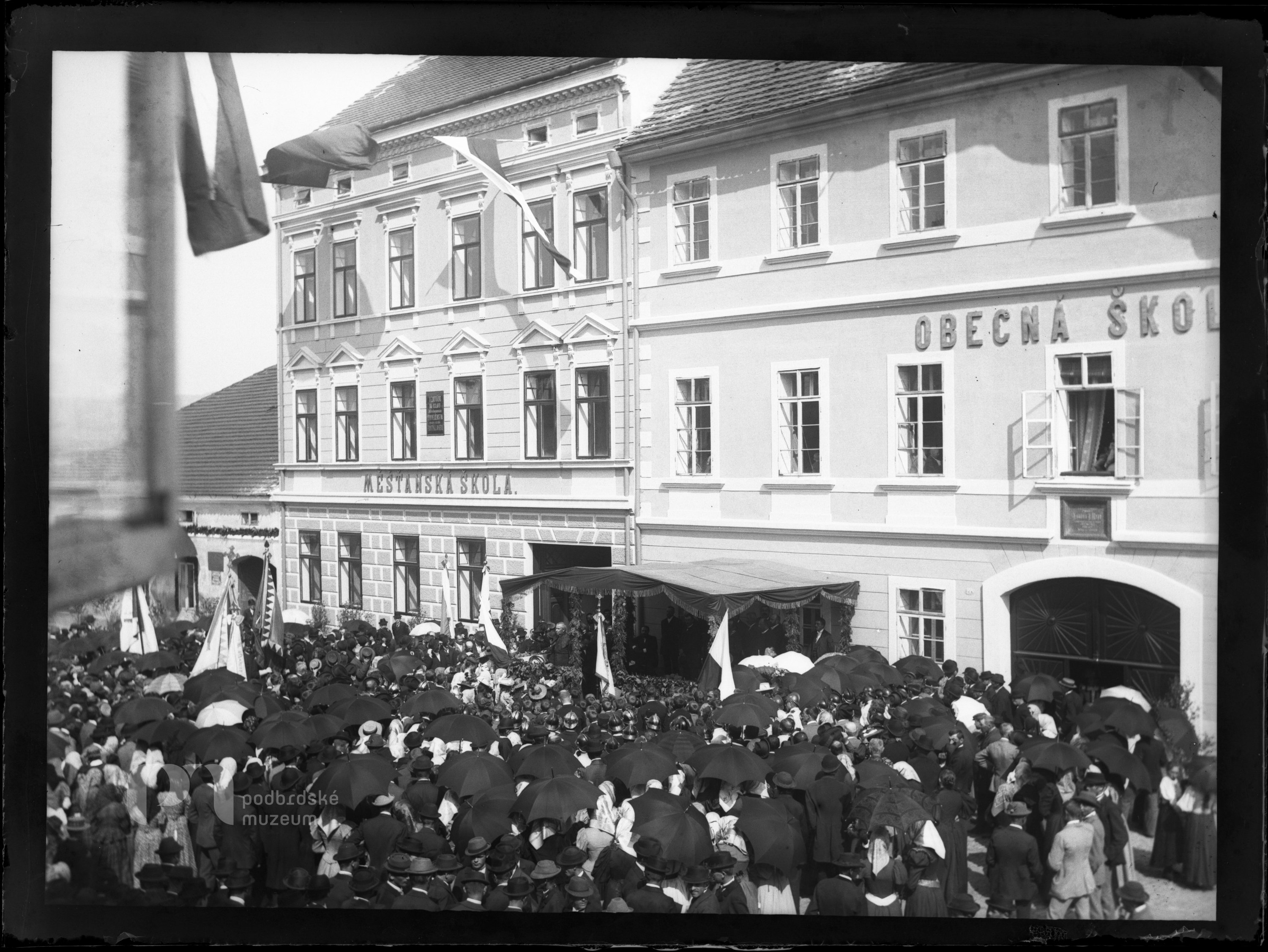 Opis ze staré obálky: Otevření měšťanské školy v Rožmitále; 20. VI