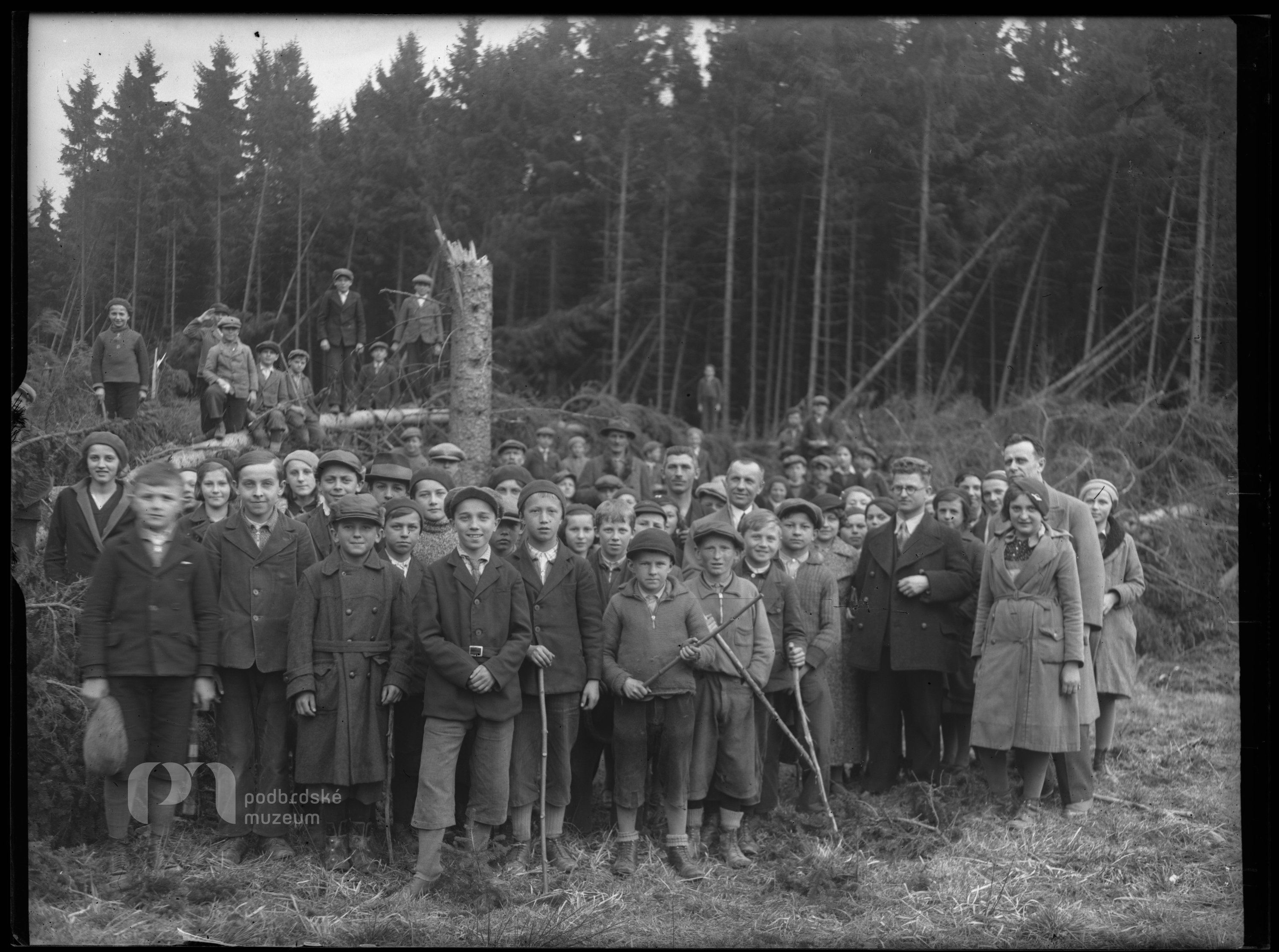 Opis ze staré obálky: Polom na lesní kultuře u P. Marie Klatovské s hromadnou prohlídkou turistů
