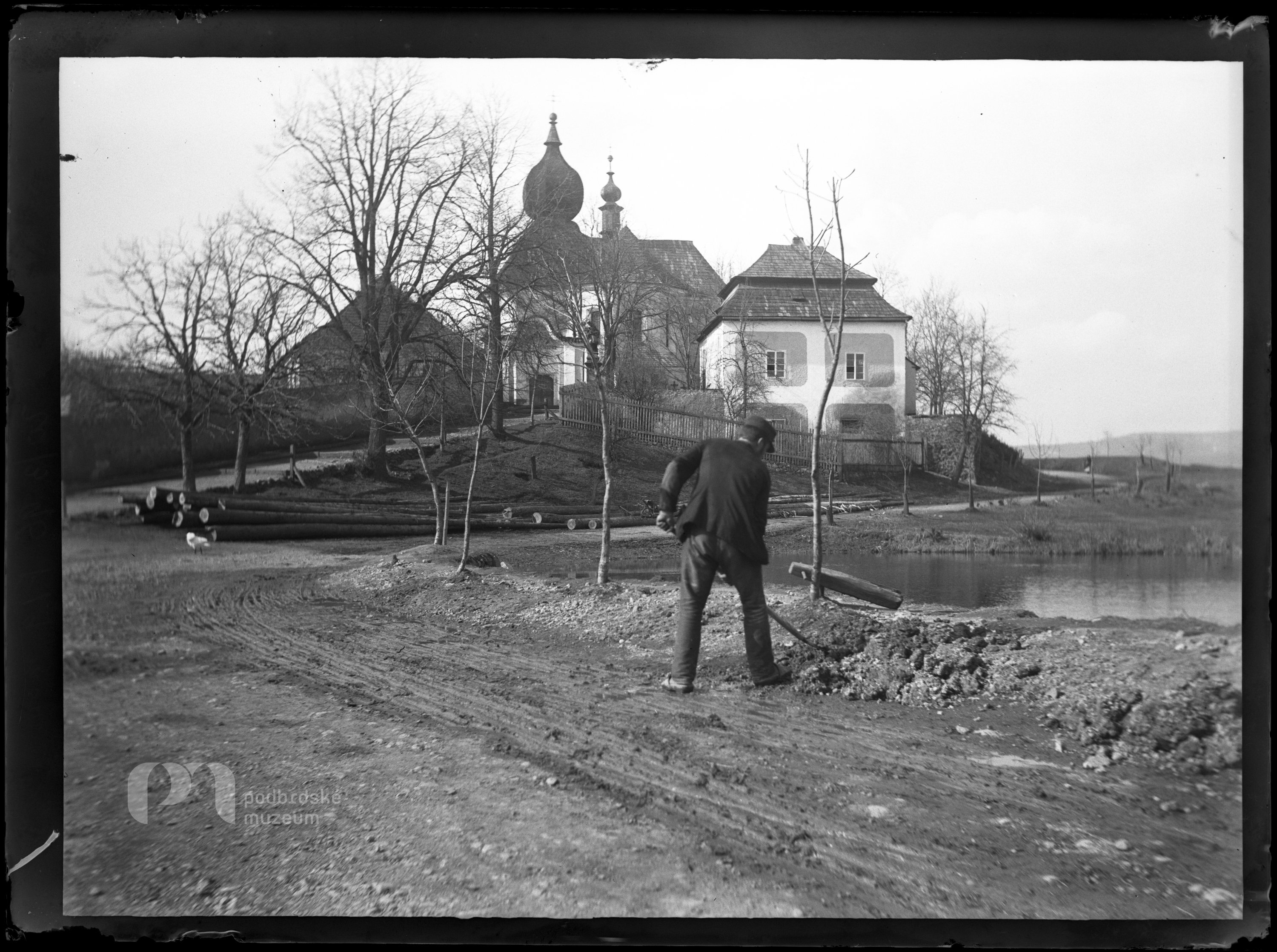 Opis ze staré obálky: Farní kostel s cestářem; 20/III. 1896