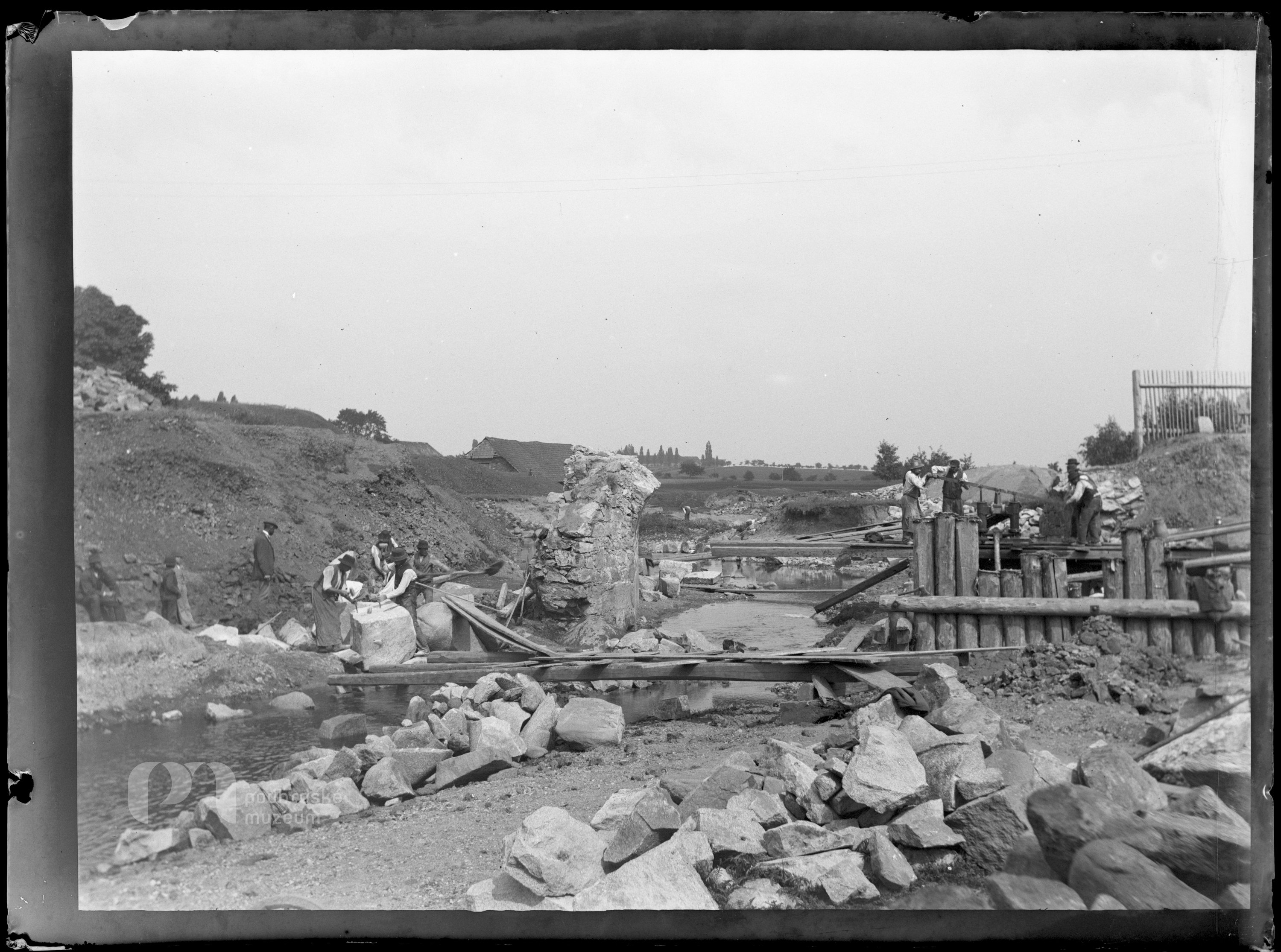 Opis ze staré obálky: Stavba mostu u slévárny 18/VII. 1896. Dopiš