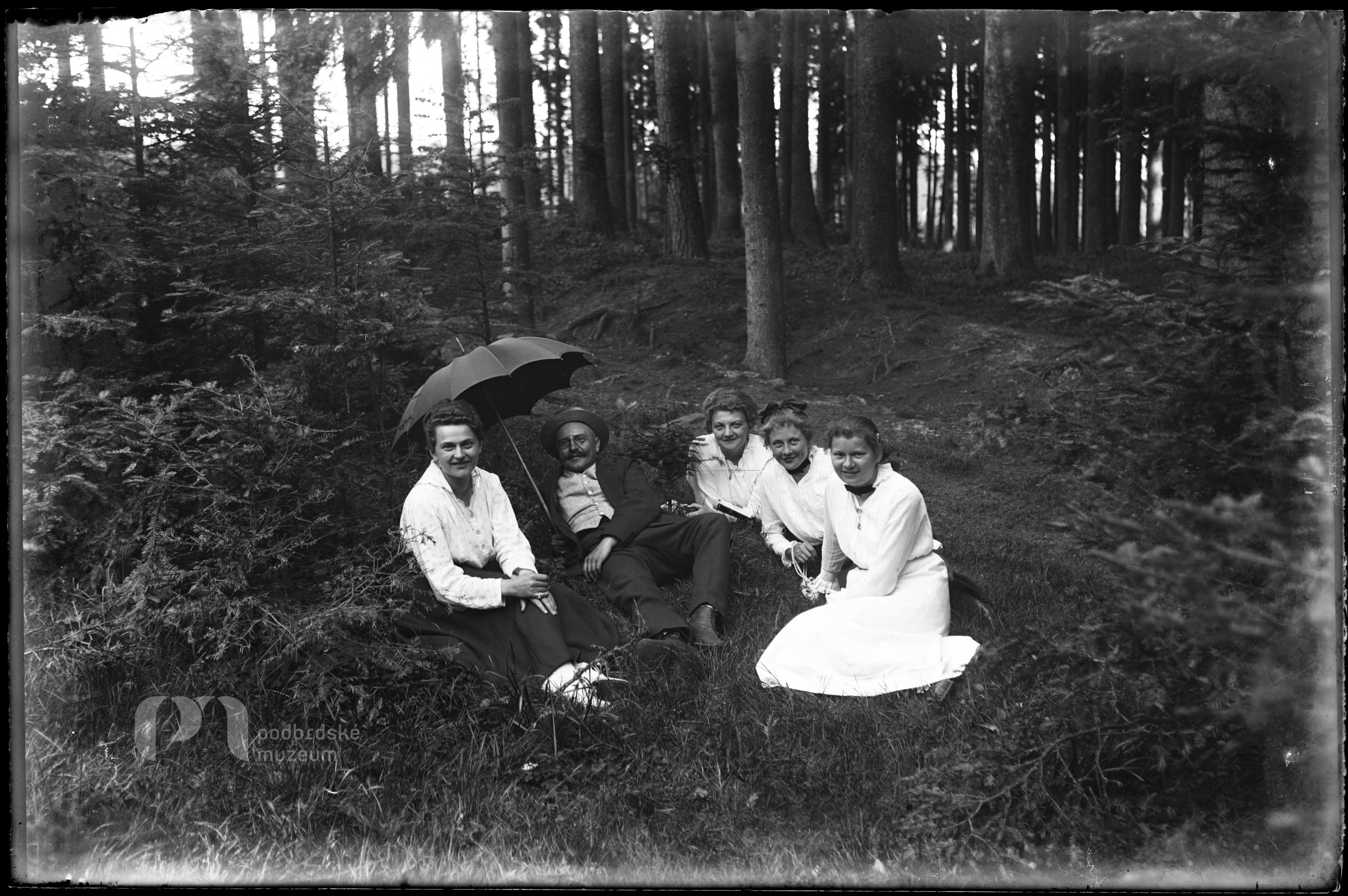 Opis ze staré obálky: U rybníka za Lázem Společnost Inž. R. Horáka, asi 1916, V. Matoušek