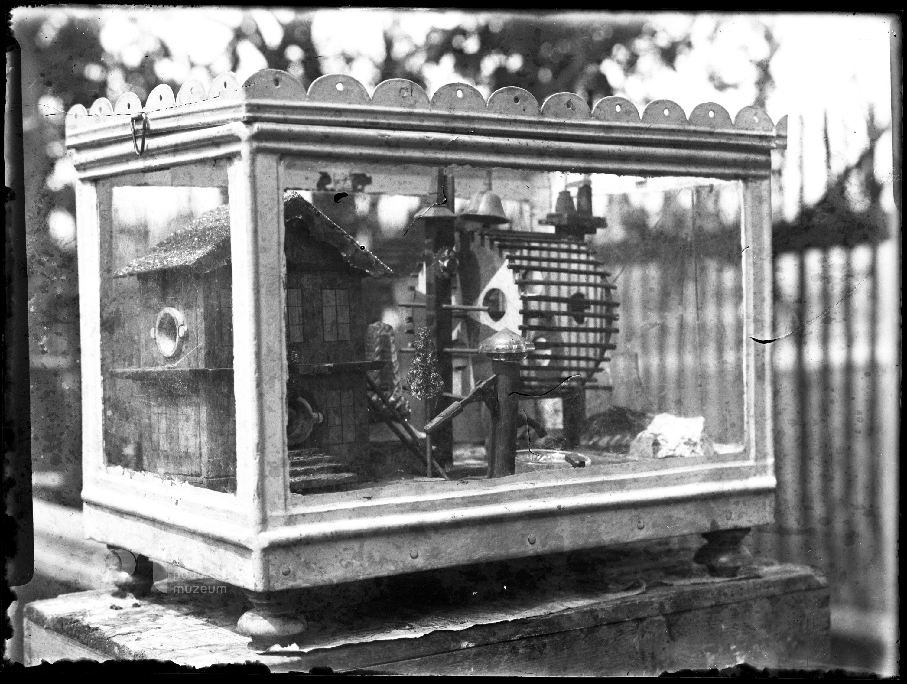 Opis ze staré obálky: Mlýnek pro myšky (hračka) ve škole v Hutích u kol. Karla Hrdiny, VM