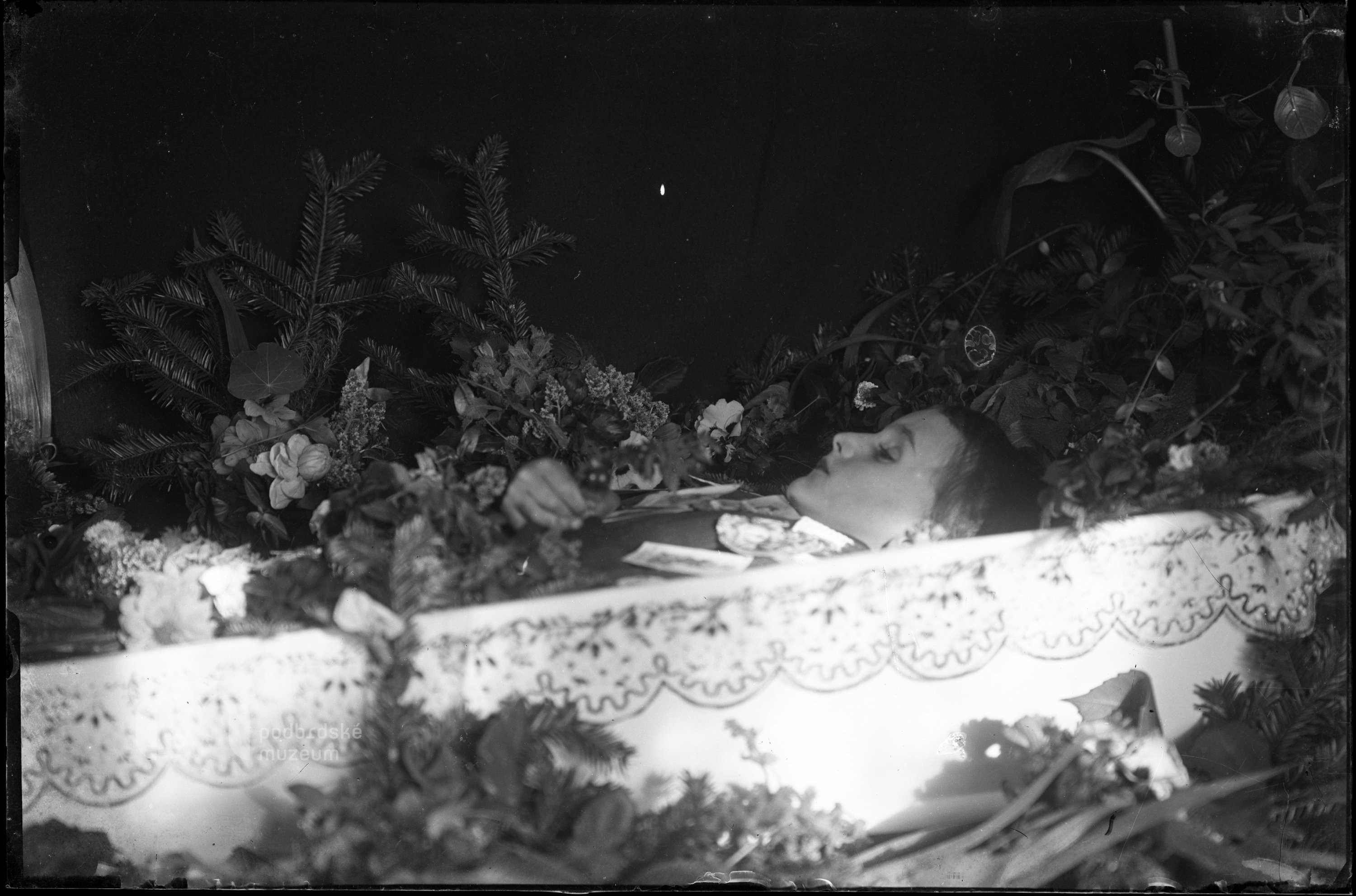 Opis ze staré obálky: V rakvi (školák?) 2 kusy