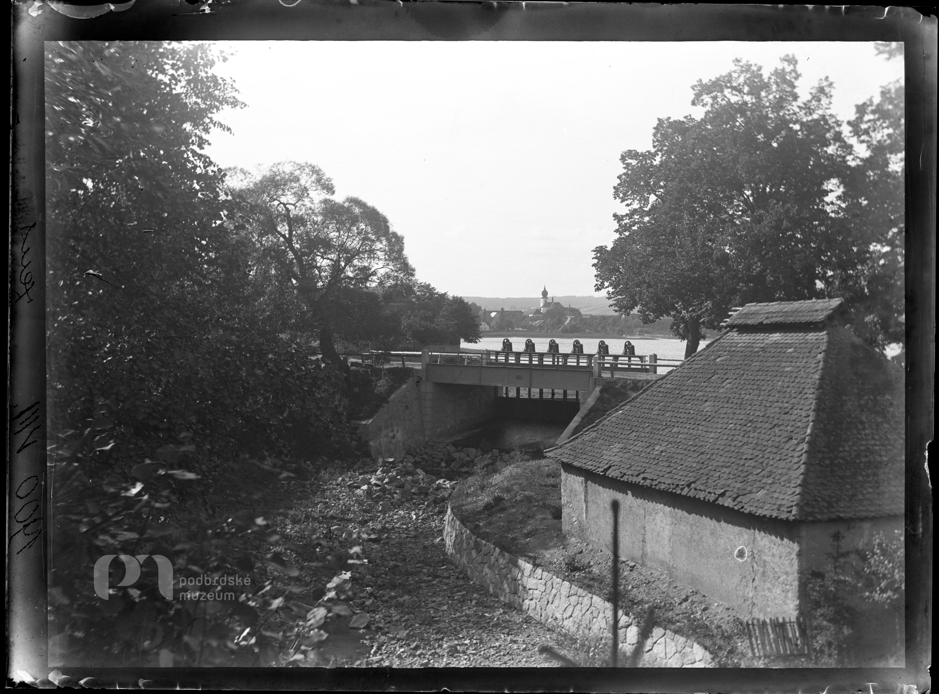 Opis ze staré obálky: Pohled od požahovny k farnímu kostelu