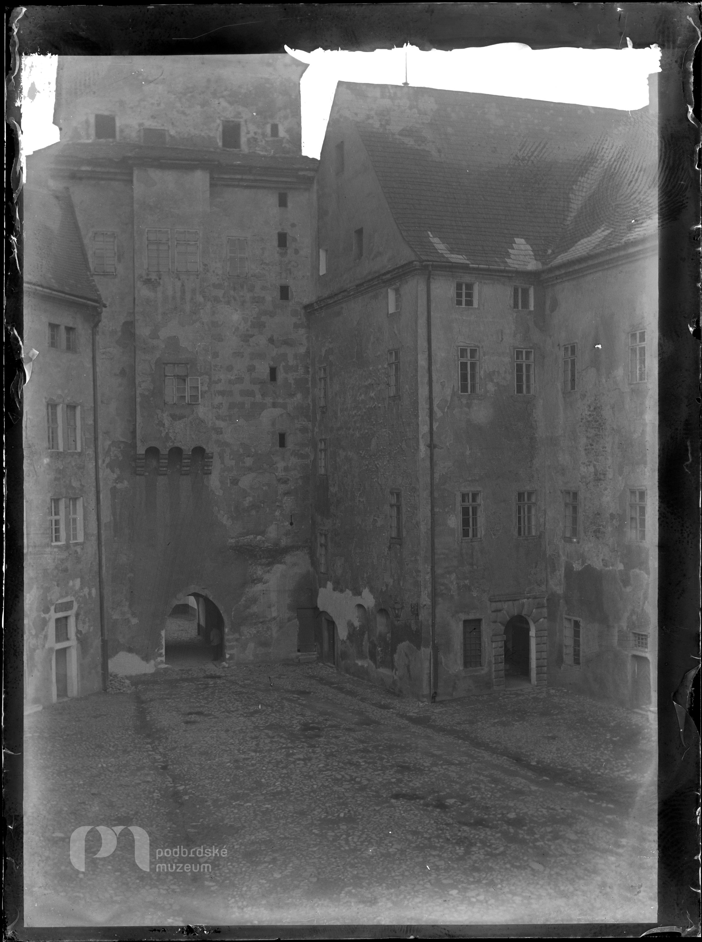 Opis ze staré obálky: Nádvoří zámku, slabé