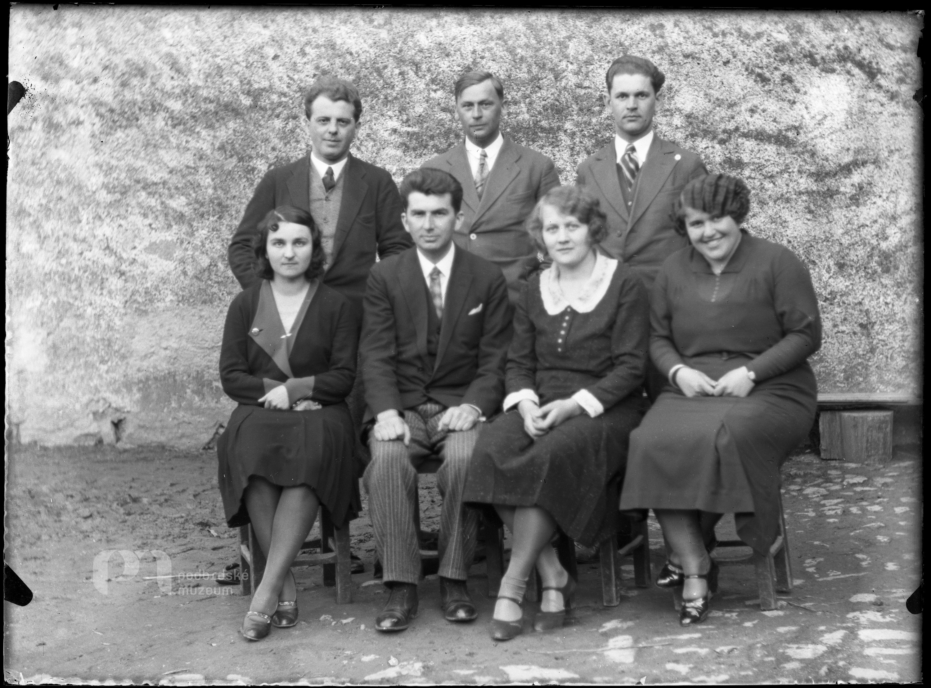 Poznámka: Stojí: MUDr. A Pompl, stát. obv. lékař, F. Tesař, St. Krejčí, učitelé. Sedí A. Maděrová, uč. Vojt. Kodádek, odb. uč. a správce školy. Kodádková, A. Beranová, odb. uč (opsáno z obrazová přílohy rožmitálské kroniky)