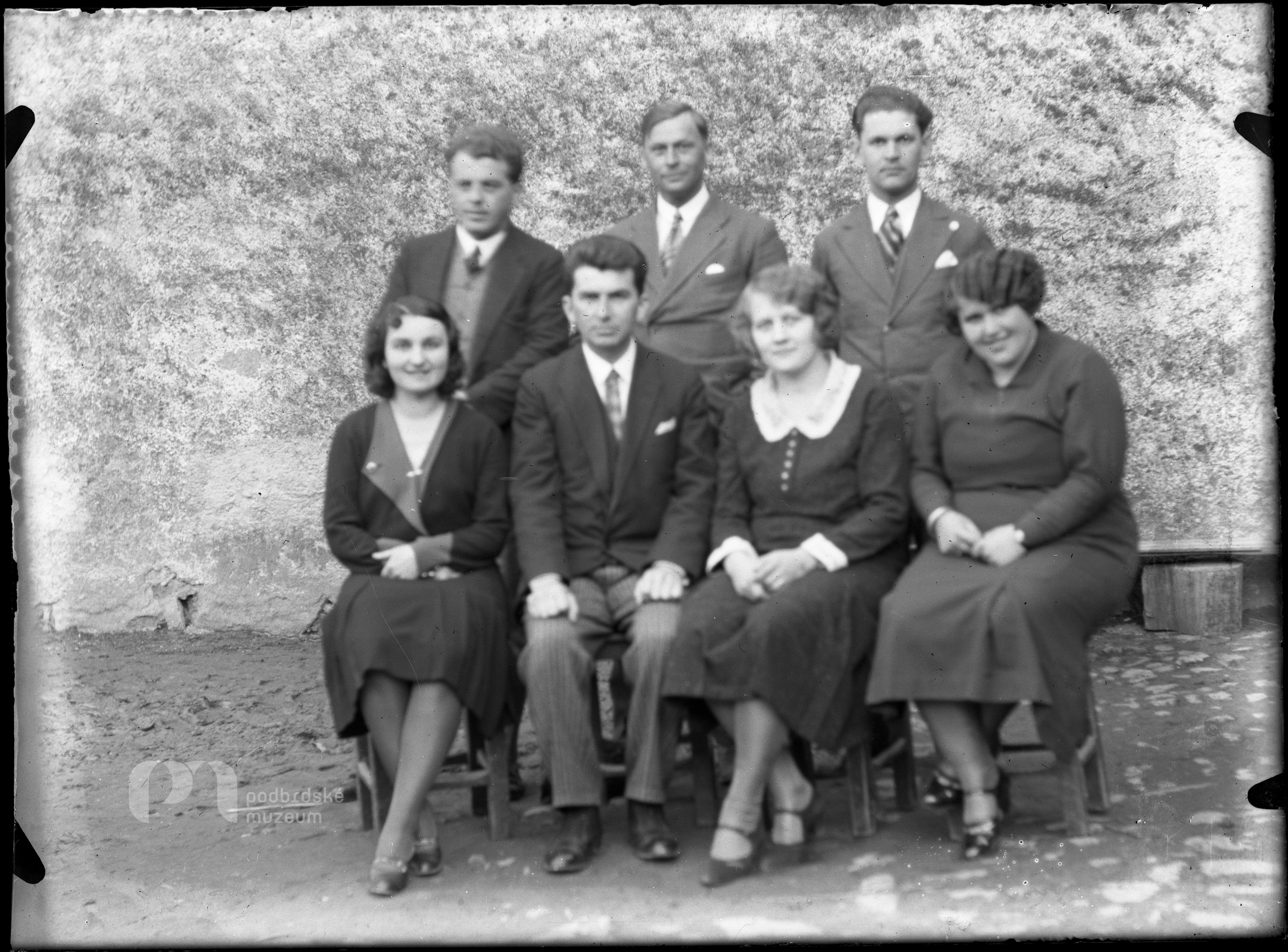 Poznámka: Stojí: MUDr. A Pompl, stát. obv. lékař, F. Tesař, St. Krejčí, učitelé. Sedí A. Maděrová, uč. Vojt. Kodádek, odb. uč. a správce školy. Kodádková, A. Beranová, odb. uč (opsáno z obrazová přílohy rožmitálské kroniky)