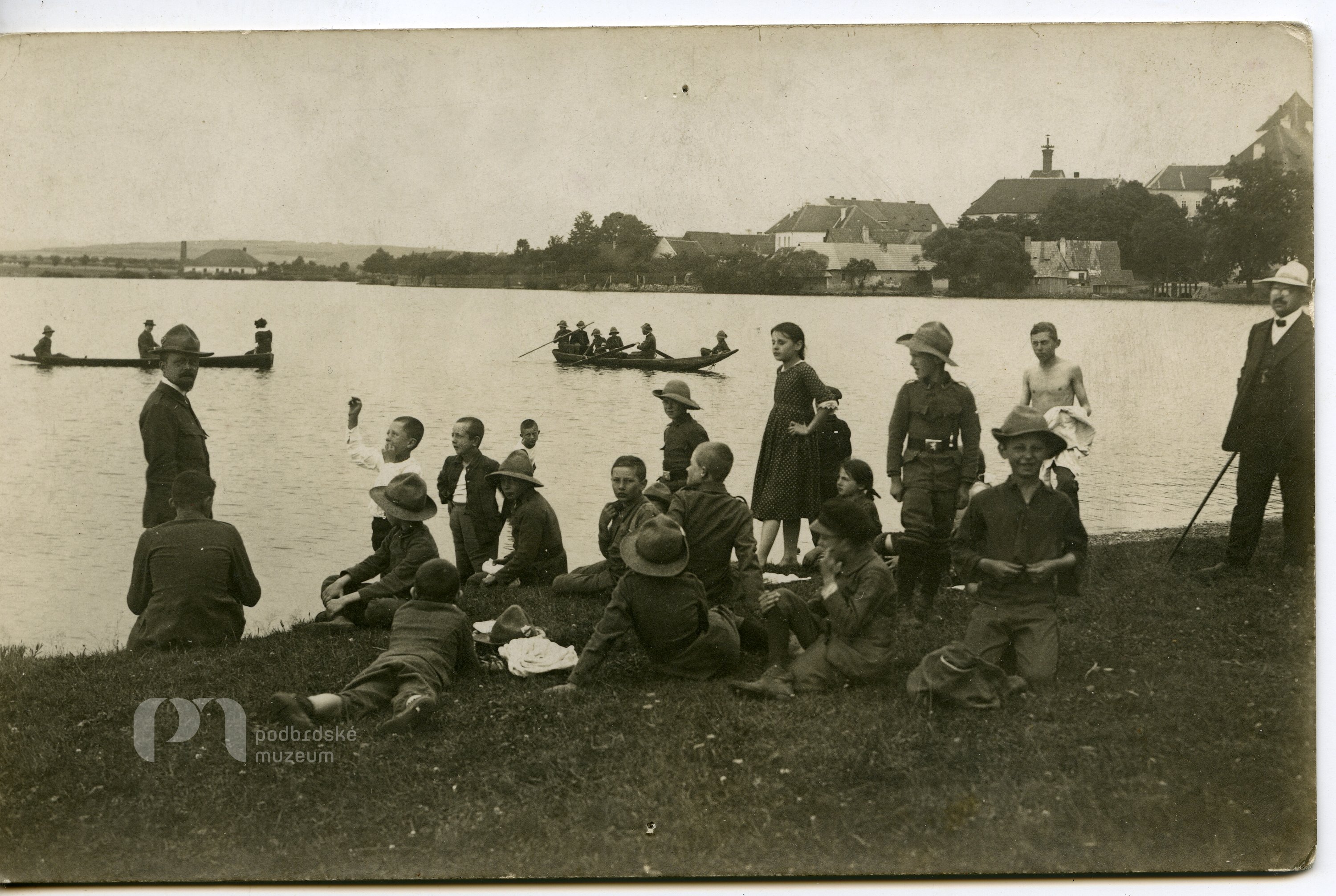 Poznámka: vzadu nápis Návštěva Američanů v kolonii