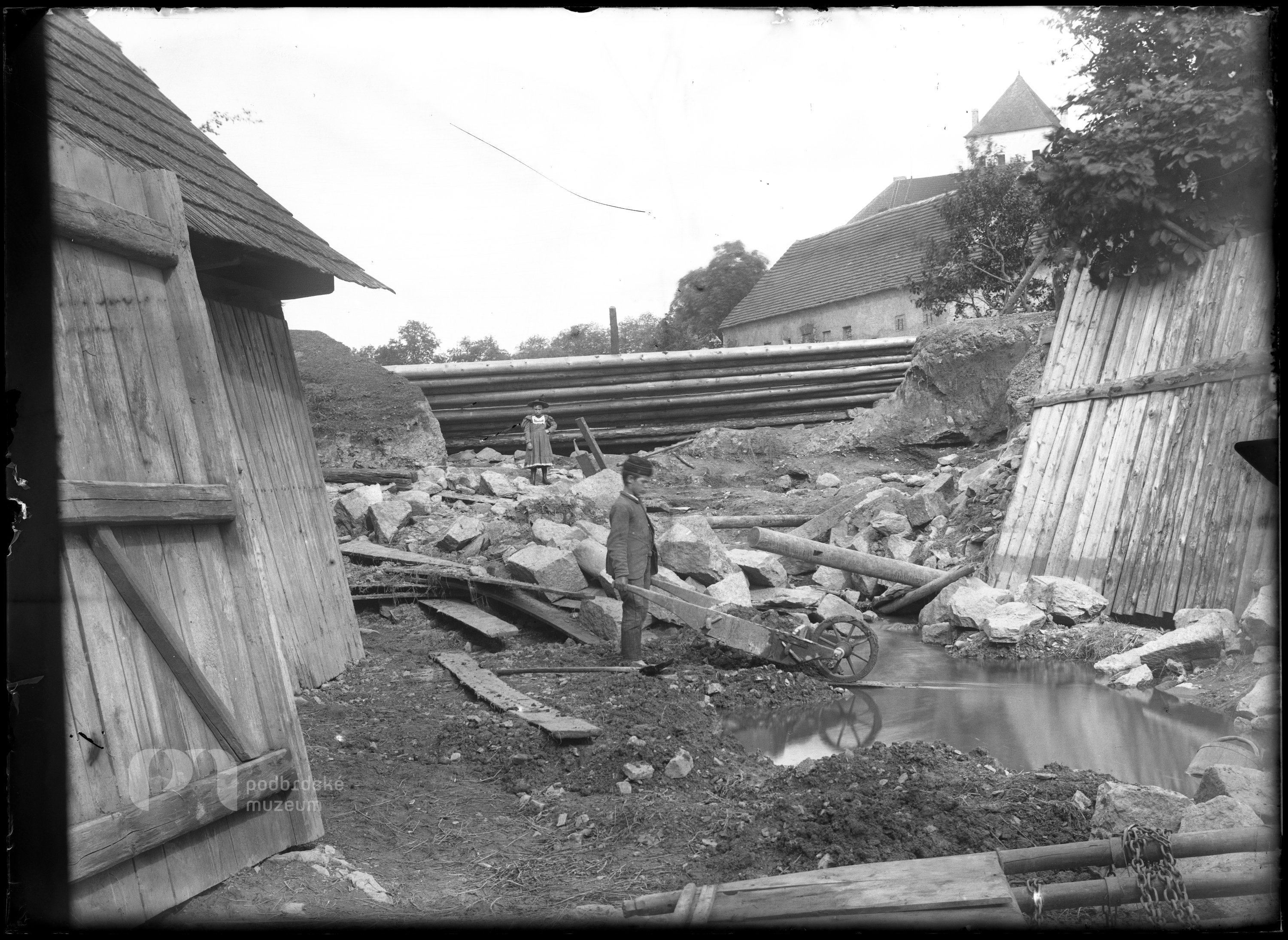 Opis ze staré obálky: Povodeň 1895; Hráz rybníka Kuchyňky