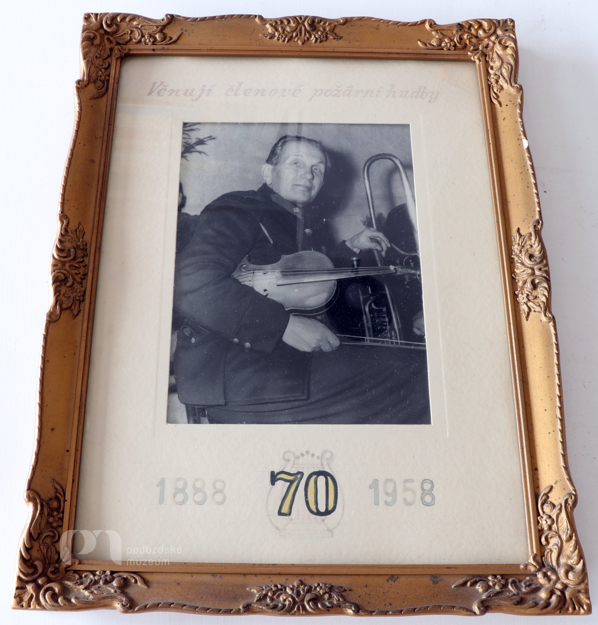 Poznámka: fotografie v rámu, k 70 věnují členové požární hudby. Hudební pedagog, varhaník a regenschori, působil v Rožmitále pod Třemšínem