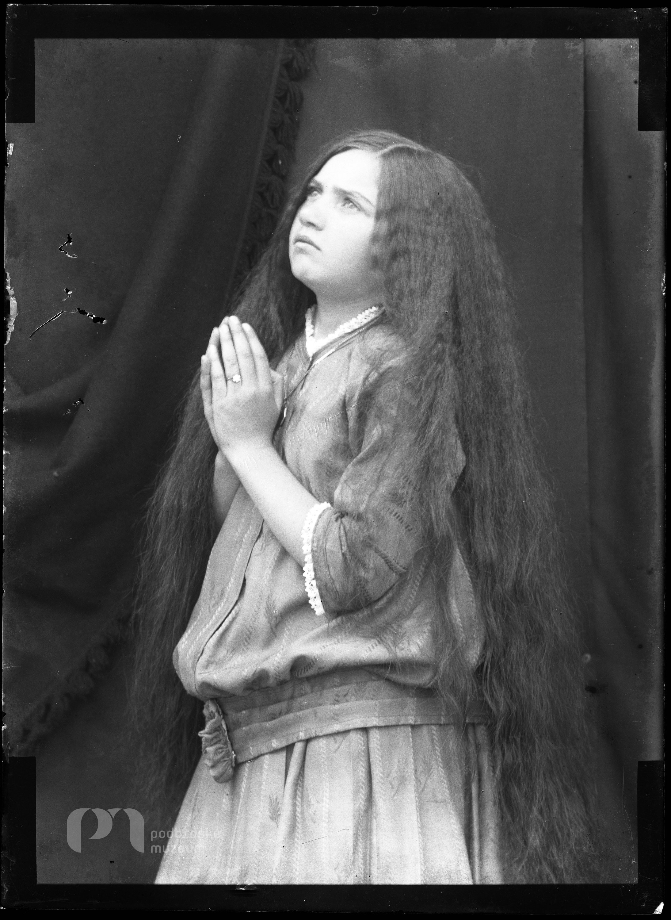 Opis ze staré obálky: Polská dívka modlící se za vlast; Polské dítě modlí se za svou těžce zkoušenou vlast a za šťastný mír. Ponische Flüchtlingin in Rožmitál betet für baldigen glücklichen Frieden (ihr schwer heimgewichtes Vaterland
