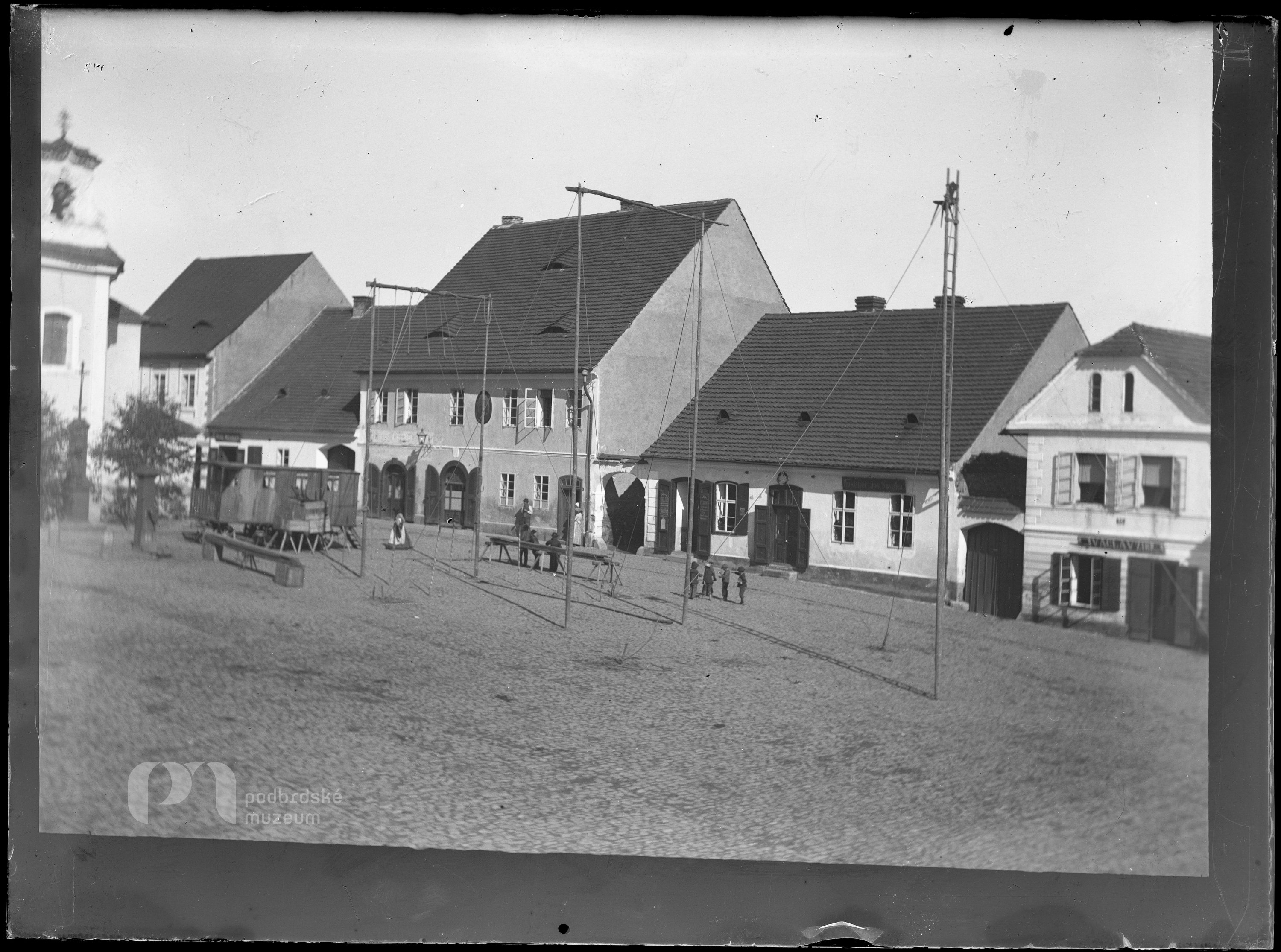 Opis ze staré obálky: Provazochodci na náměstí v Rožmitále; komedianti Provazochodci na náměstí v Rožmitále 8. 10. 1893 8/10 93 1 h. odp. slunce B F/14 L- moment, nejrychl. nuhol