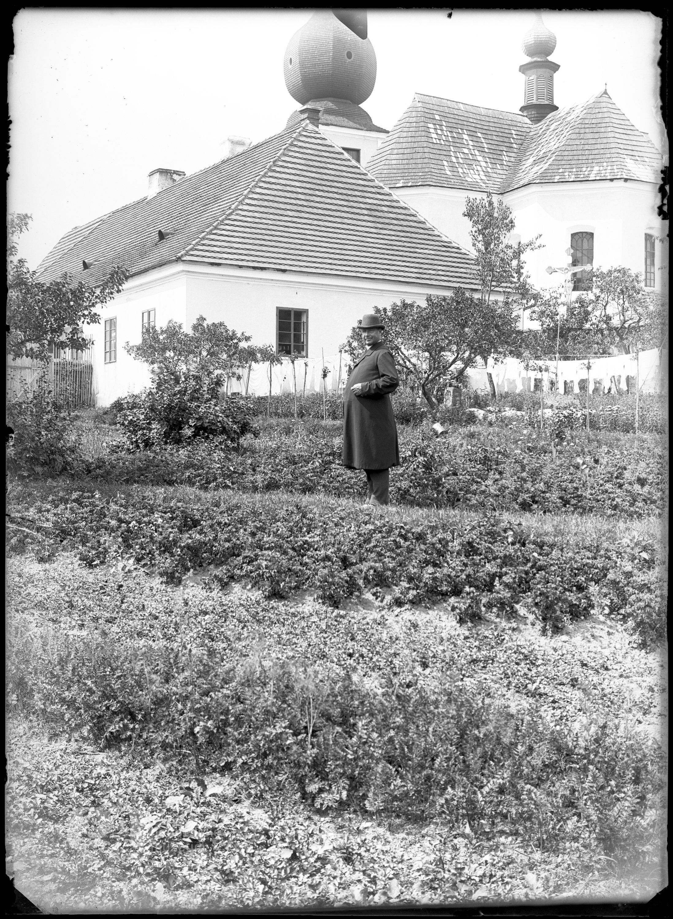 Opis ze staré obálky: Fara ve Starém Rožmitále (kostel v pozadí) (s postavou faráře?)