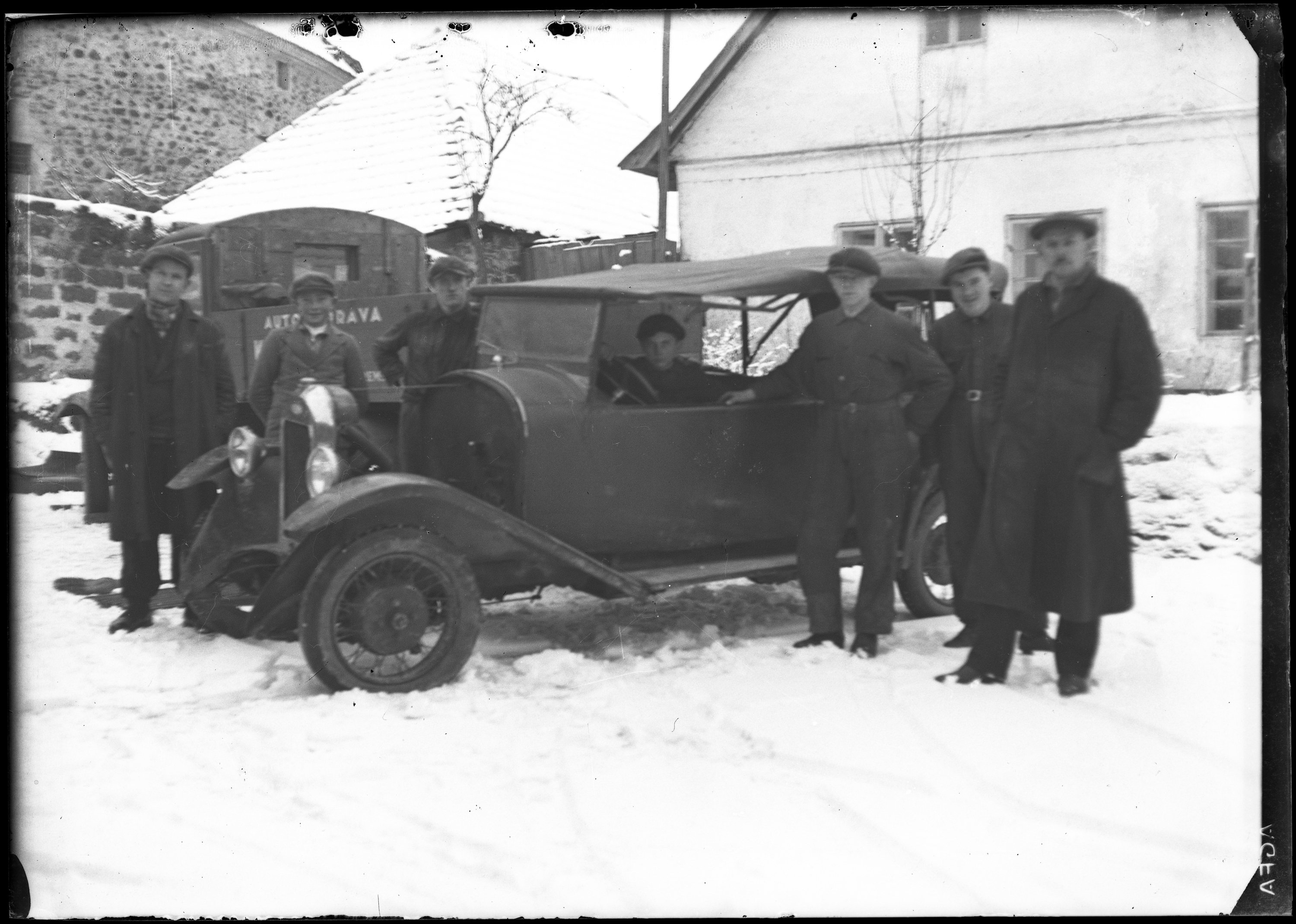 Opis ze staré obálky: Autoopravna p. Durdila III. (auto na dvoře) 3 ks