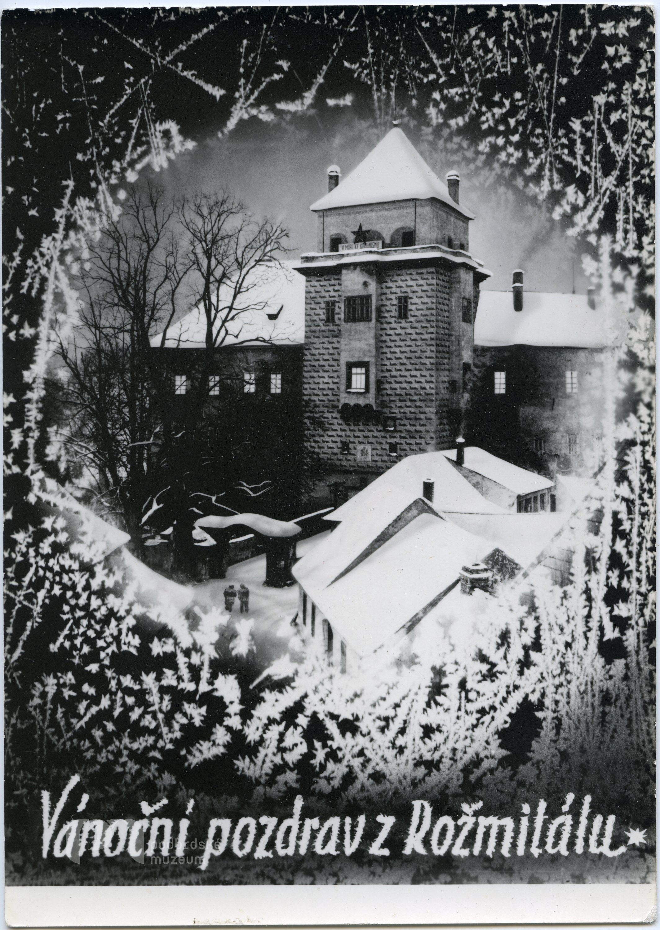 Poznámka: fotomontáž, text na revers FOTO*PROPAGACE*KS ROŽMITÁL P. TŘ. Text tužkou asi Jindřich Hásek, pohlednici tedy nejspíš vytvořil Miroslav Hásek. Neprošlá poštou