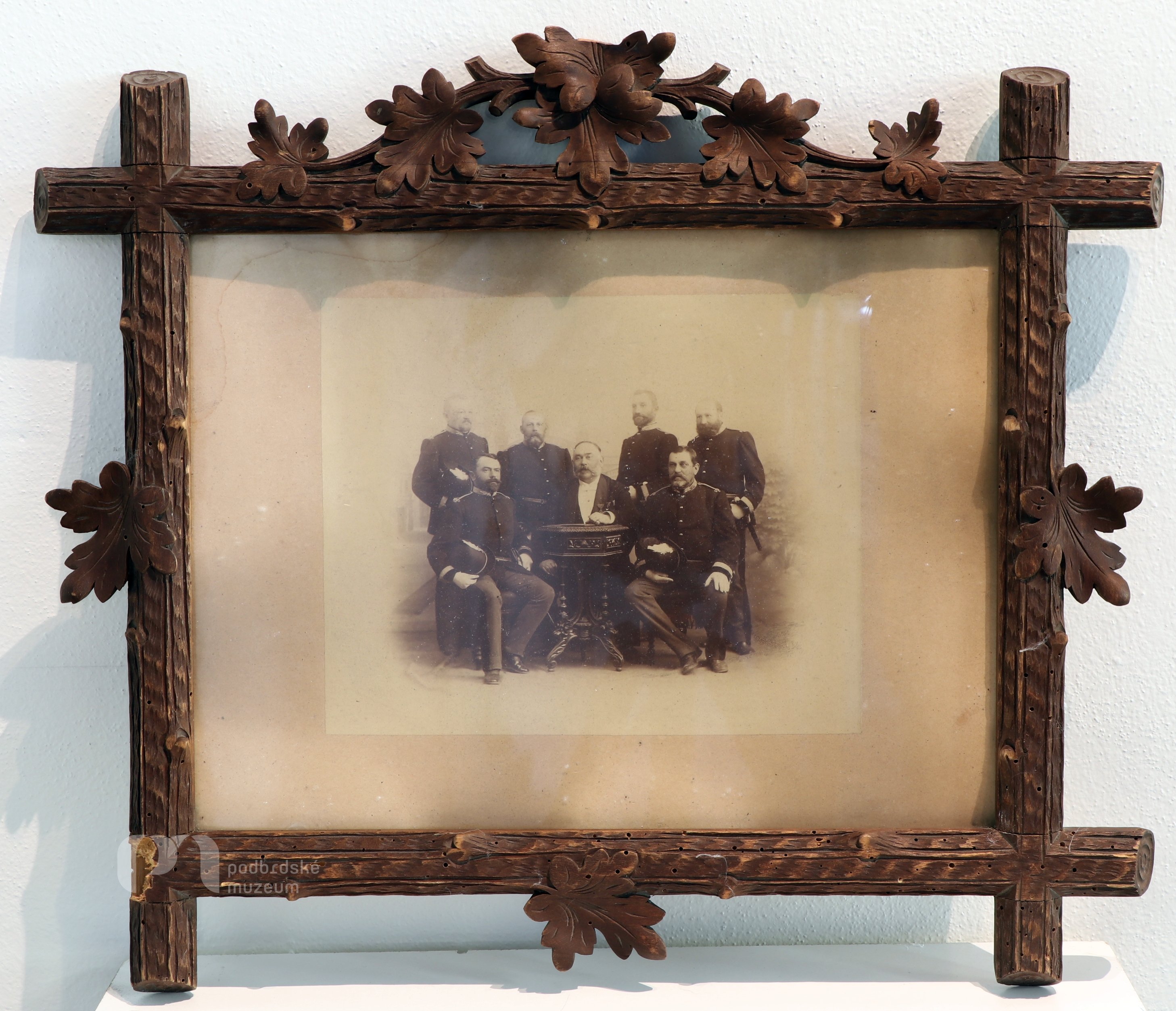 Poznámka: v dřevěném vyřezávaném rámu, zleva K. Křepelka (N. Rychnov), Jos. Hoyer (Týn n. Vltavou), Fischer (Č. Řečice), Rich. Totzauer (Schwatz), vrch. lesm. Sündermann (Dol. Břežany), rada Zvěřina, lesm. Haschke (Rožmitál)
