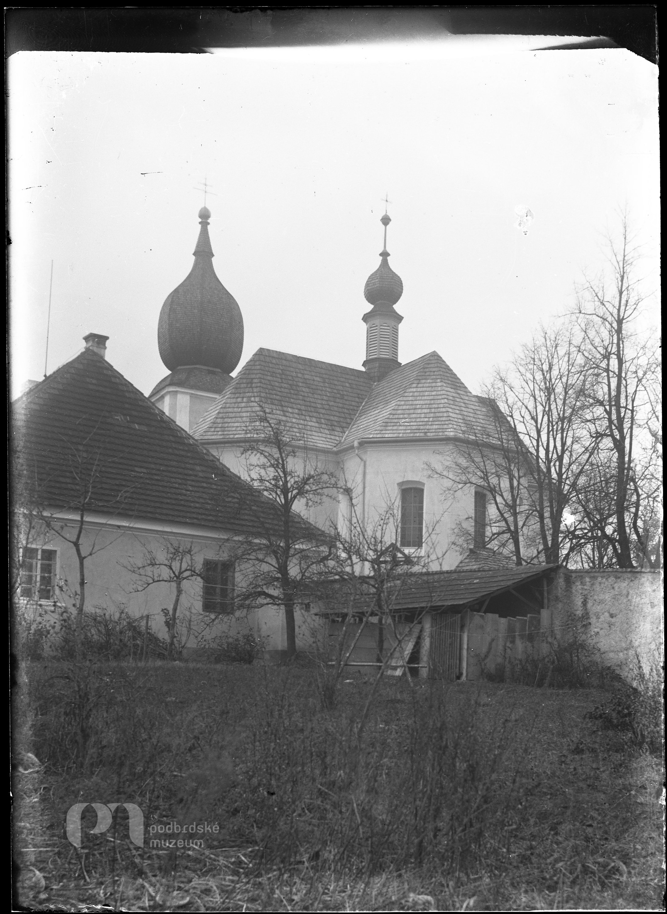 Opis ze staré obálky: Václav Matoušek: Kostel ve St. Rožmitále, též interiéry s lidmi, krabička Mariors Gaslight Paper