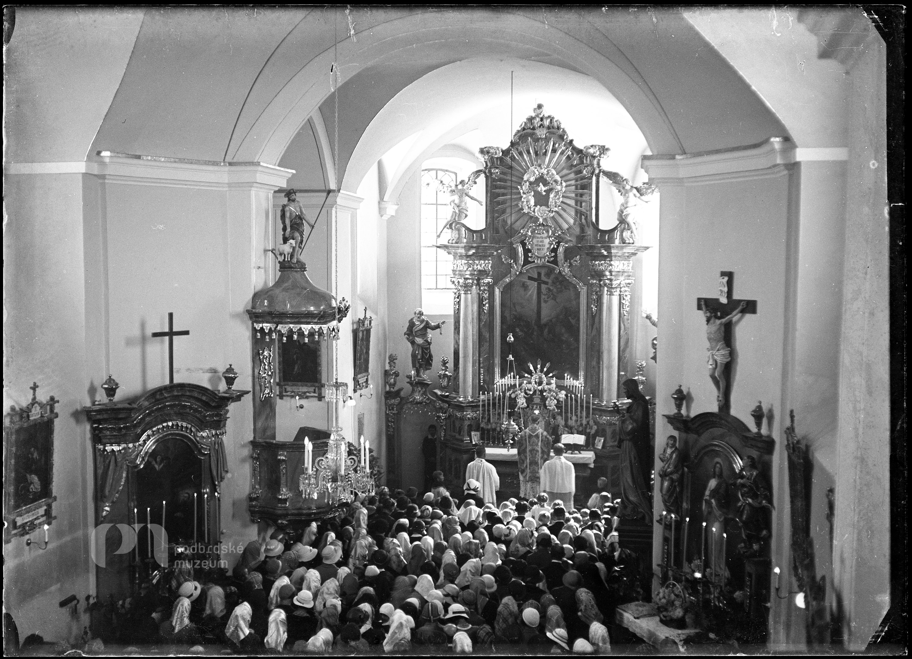 Opis ze staré obálky: Václav Matoušek: Kostel ve St. Rožmitále, též interiéry s lidmi, krabička Mariors Gaslight Paper
