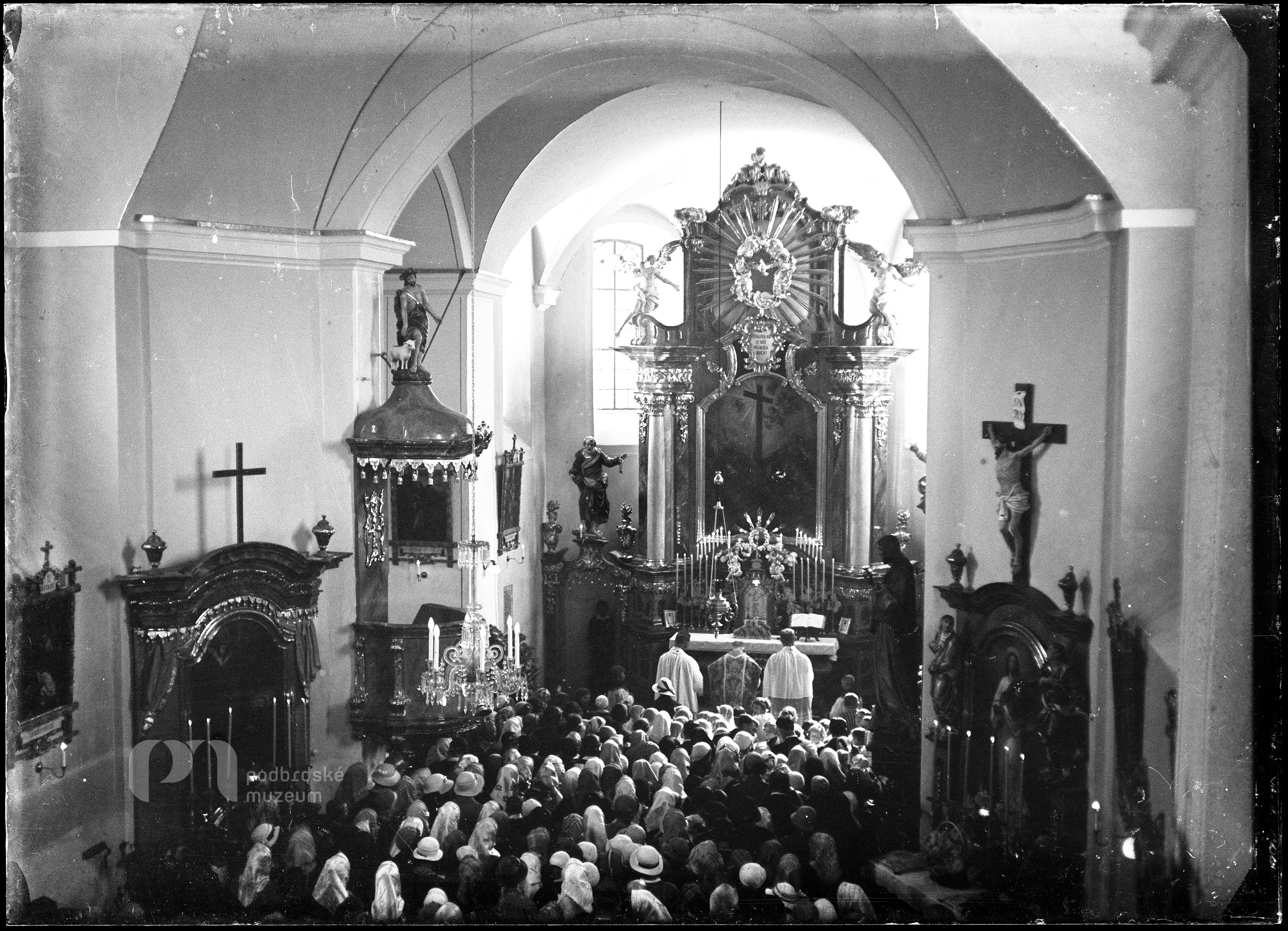 Opis ze staré obálky: Václav Matoušek: Kostel ve St. Rožmitále, též interiéry s lidmi, krabička Mariors Gaslight Paper