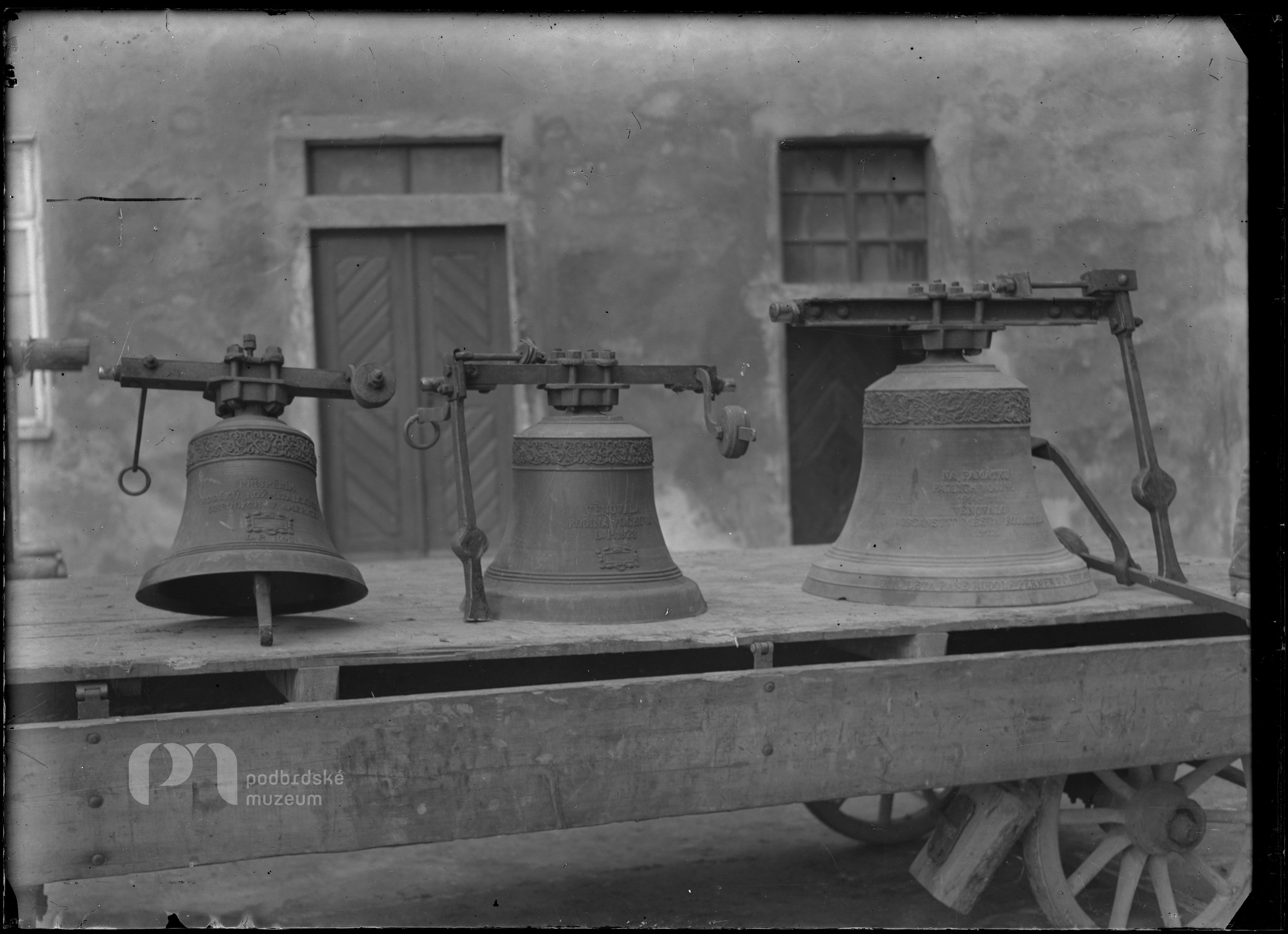 Opis ze staré obálky: Václav Matoušek: Starý Rožmitál oprava kostela, 1933 - nové zvony - růz. stavení (B. Sadílek), Starý Rožmitál: oprava obou věží na kostele. Krabička Foma ortho rapid 6,5x9