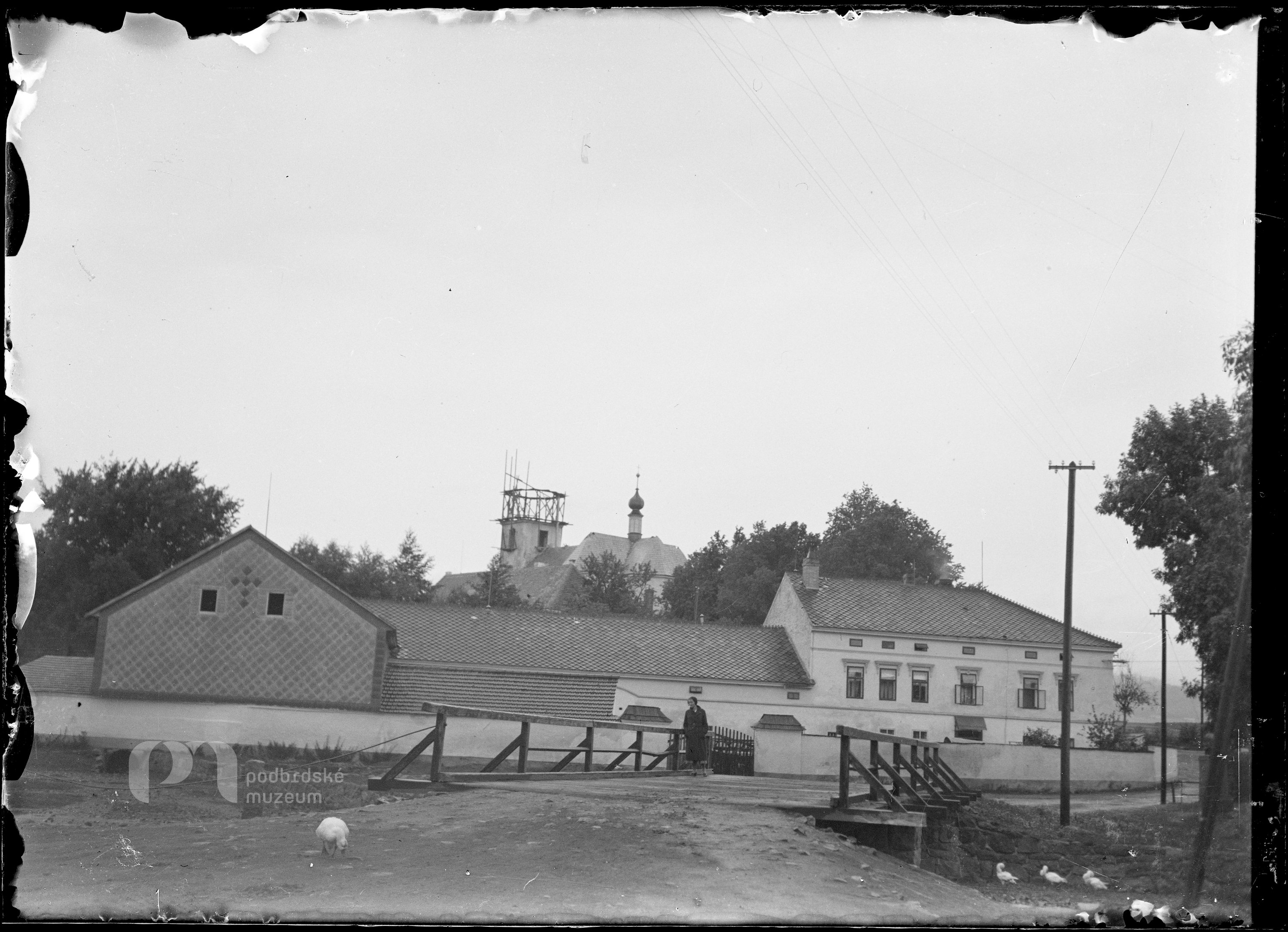 Opis ze staré obálky: Václav Matoušek: Starý Rožmitál oprava kostela, 1933 - nové zvony - růz. stavení (B. Sadílek), Starý Rožmitál: oprava obou věží na kostele. Krabička Foma ortho rapid 6,5x9
