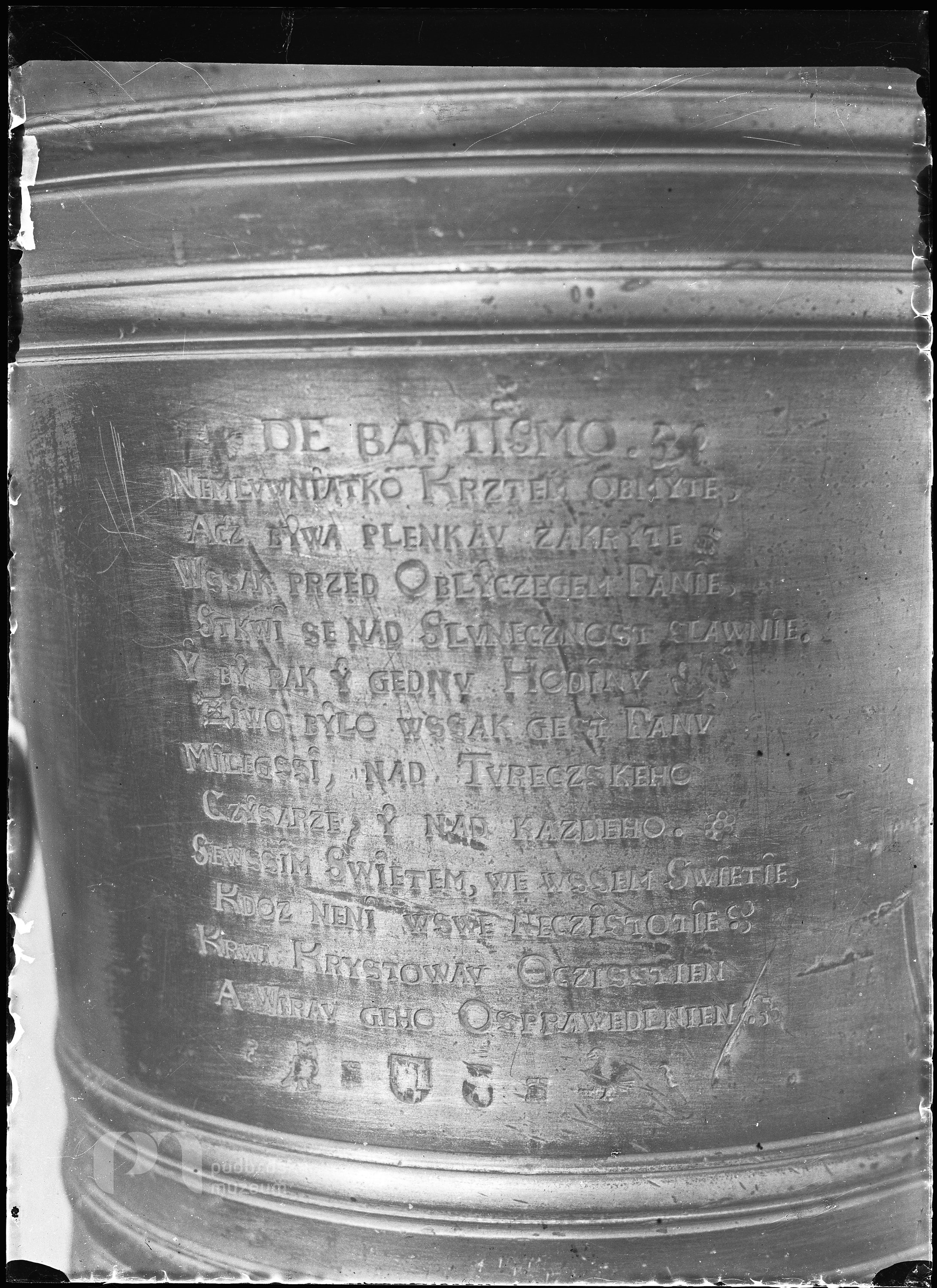 Nápis na křtitelnici v kostele ve Starém Rožmitále