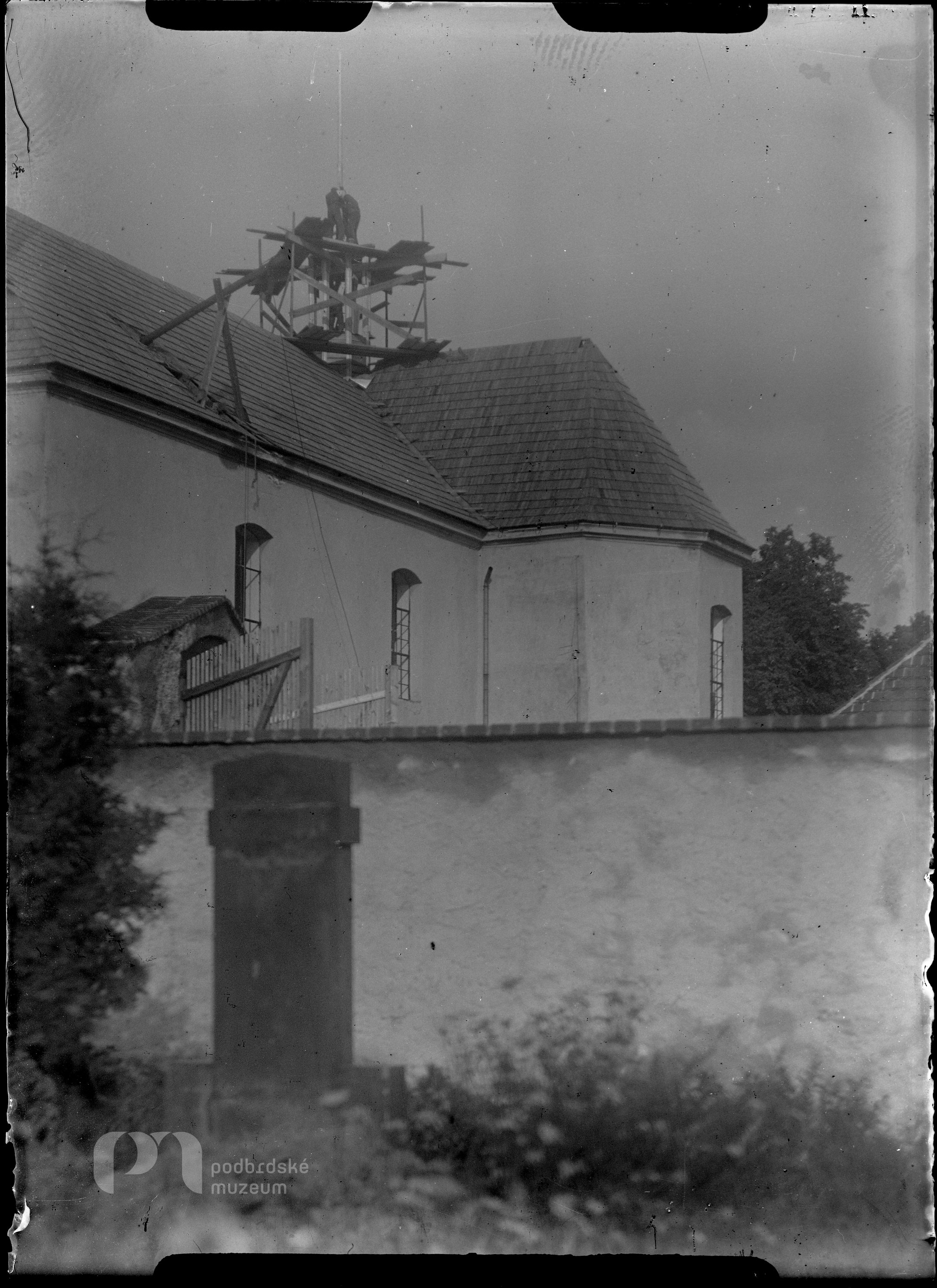 Opis ze staré obálky: Václav Matoušek: Starý Rožmitál, větš. opravy kostela po požáru 1933. Krabička FOMA