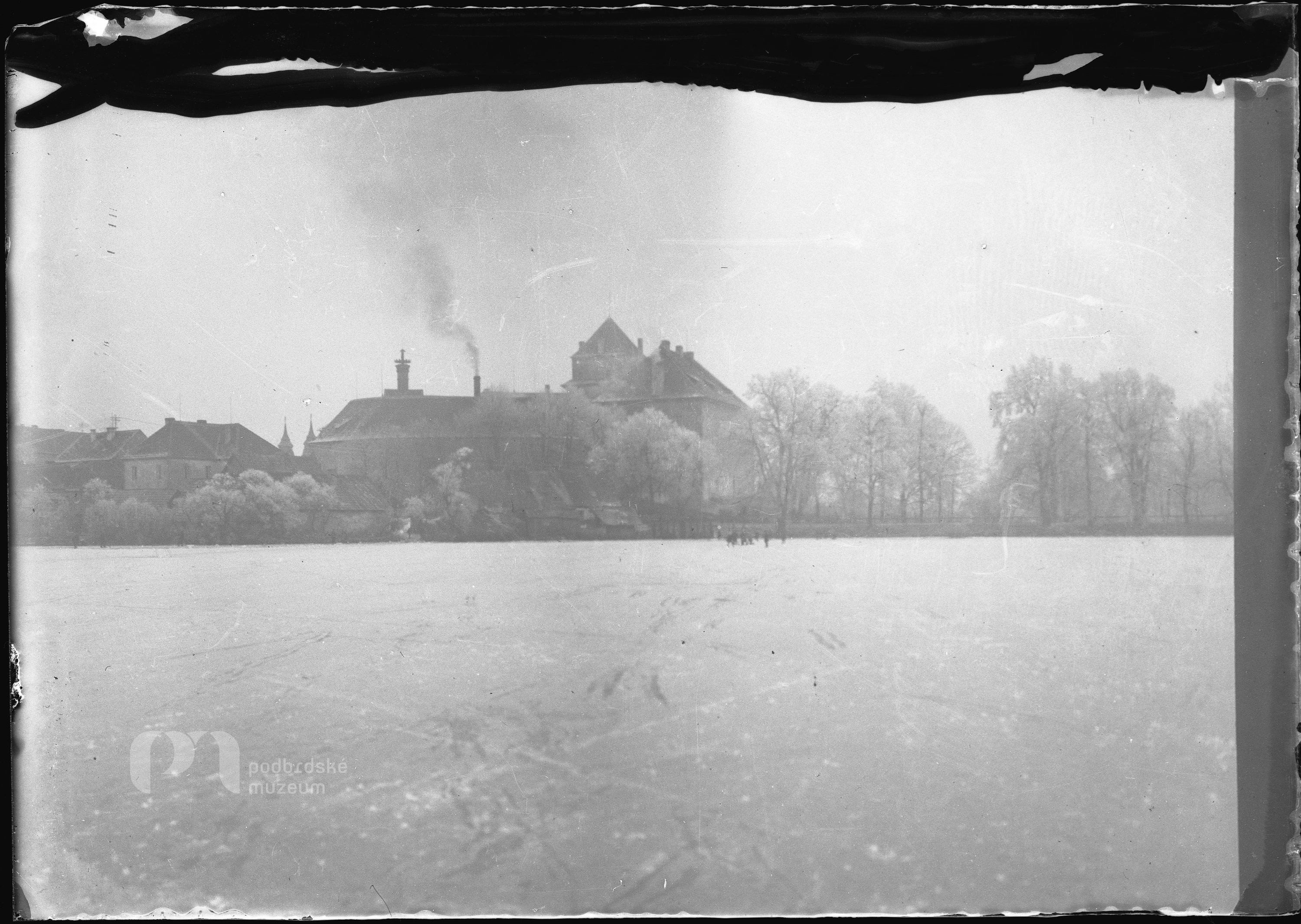 Rožmitálský zámek ze zamrzlého Podzámeckého rybníka
